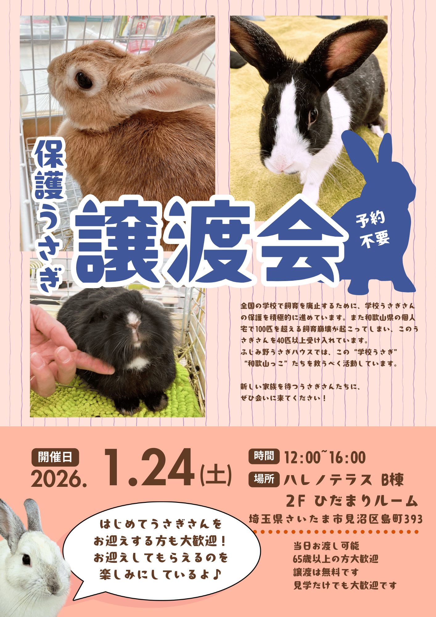 1月の保護うさぎさん譲渡会🐇のお知らせ