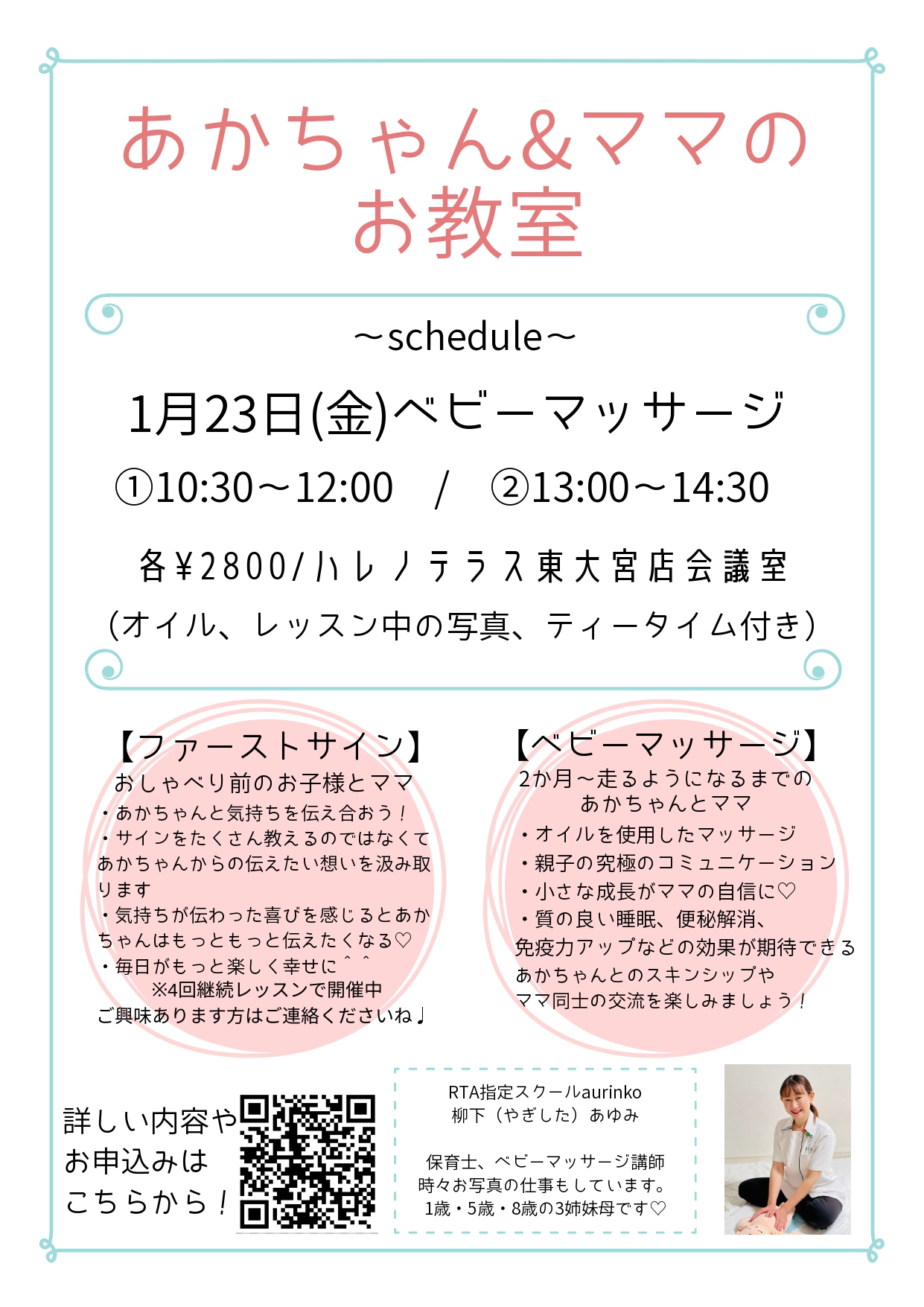 1月のベビーマッサージ教室❤開催のお知らせです。